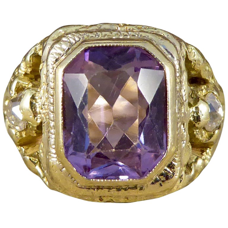 Many vintage inspired amethyst rings include side accent diamonds, and most antique amethyst ring styles in white gold can also be crafted in yellow gold, rose gold or platinum New Listing Vintage 9ct 375 Yellow Gold Ring Stamp Tiny 2 Diamond Chips Four Amethyst Sz 8